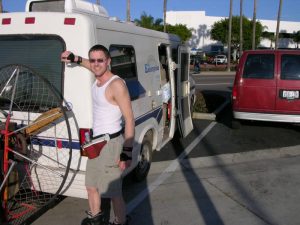 Enterprise A on its last trip home with Tim Kaiser on inline skates