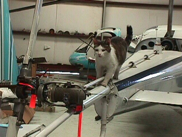 Cat walking near tail rotor on helicopter during annual inspection for cat scan by Jeff Goin | May 5, 2019