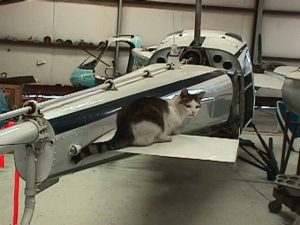 Cat walking around on helicopter during annual inspection for cat scan horizontal stab by Jeff Goin | May 5, 2019