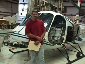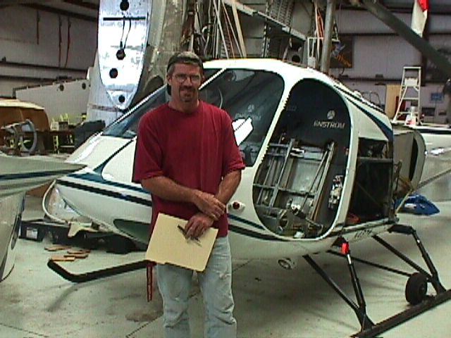 John Neel in front of Ellie the helicopter after annual inspection