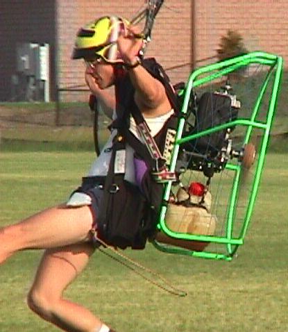 Jeff Goin foot dragging his Fly 70 green paramotor