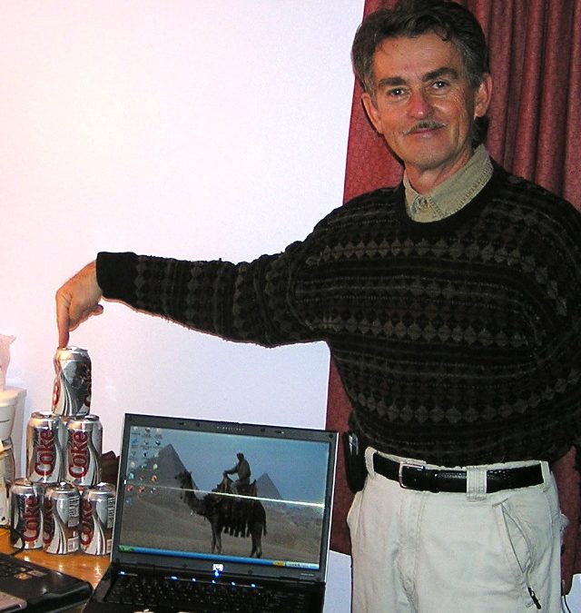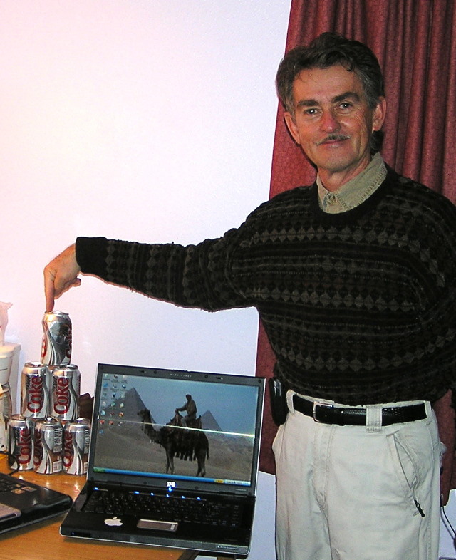 Jerry Daniele pointing at cans of diet coke