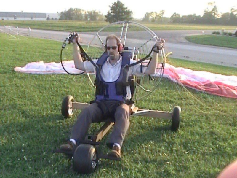 Mike Rish giving Brandon Oberlins Timber Trike its inaugural flight