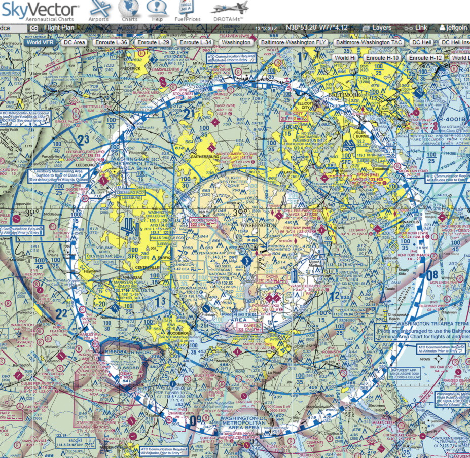 SkyVector excerpt of Washington DC airspace